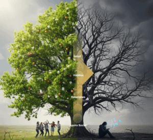 La integración social es fundamental para la vida en comunidad. Cuando una persona se ve afectada por una adicción, pierde la calidad de las conexiones humanas. En un hipotético caso “D.M.”, cuyo corto tiempo en una situación adictiva lleva a observar cambios claros: sus relaciones se debilitan, las interacciones se vuelven superficiales y, en última instancia, la capacidad de disfrutar, reír y compartir se ve erosionada.